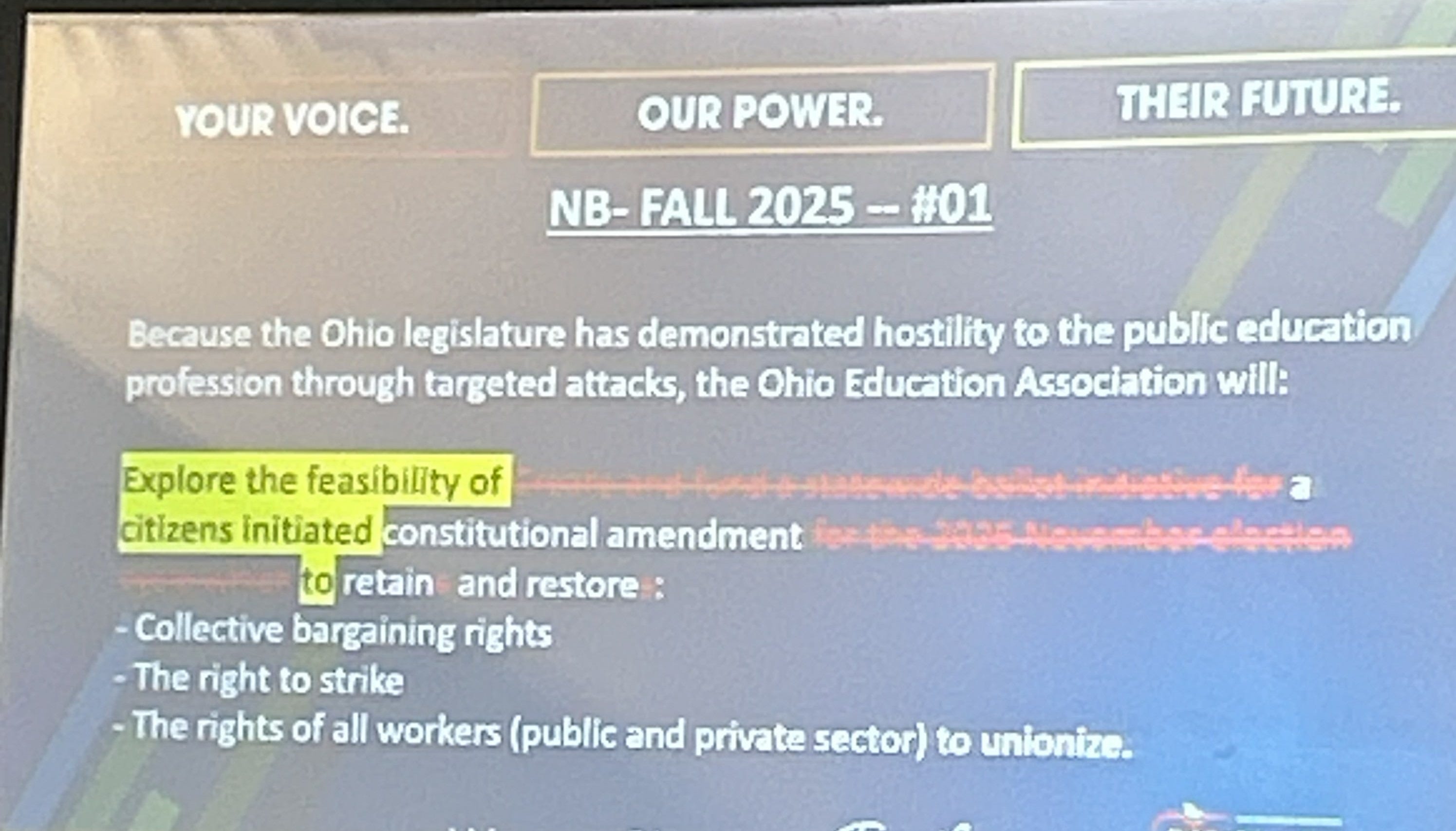 Our union caucus fought to enshrine collective bargaining rights in Ohio's constitution. With more effective leadership, educators could lead the labor movement in Ohio.